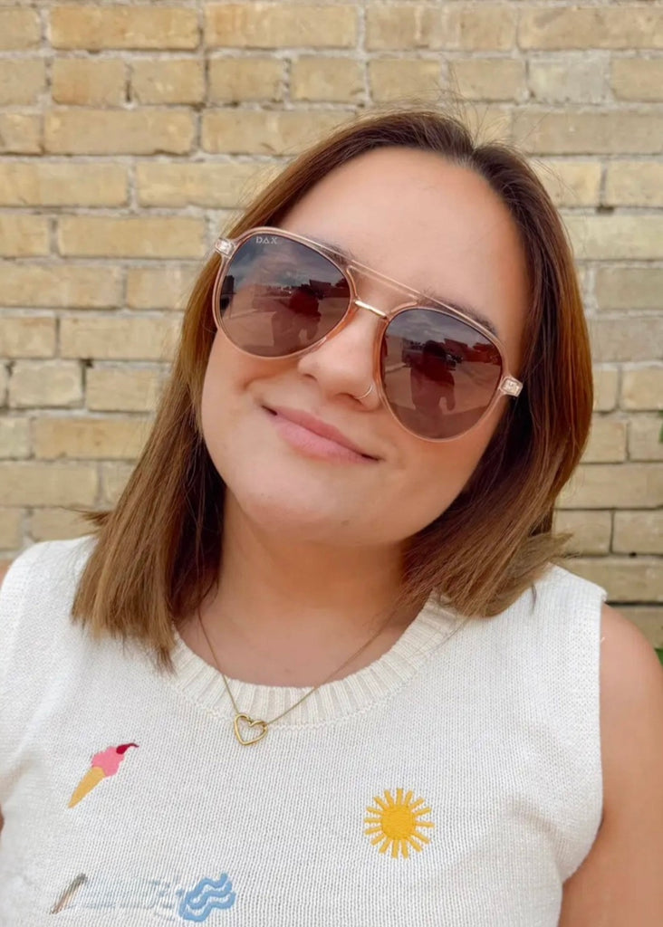 EARHART CLEAR - A bold, versatile aviator designed for hair-friendly comfort, polarized performance, and boutique-ready appeal — perfect for everyday wear and ALL-DAY COMFORT: Hair-friendly frames for smooth, snag-free wear. -EYE SAFETY: TAC polarized lenses reduce glare and provide full UV400 protection. -LIGHTWEIGHT WEAR: Comfortable for everyday use and all-day wear.
