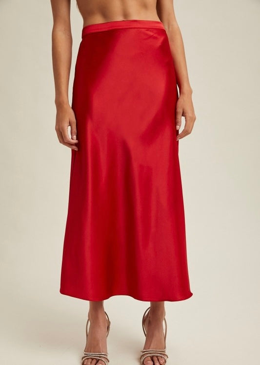 All In Spirit Red Satin Midi Skirt – Pink Attitude Boutique
