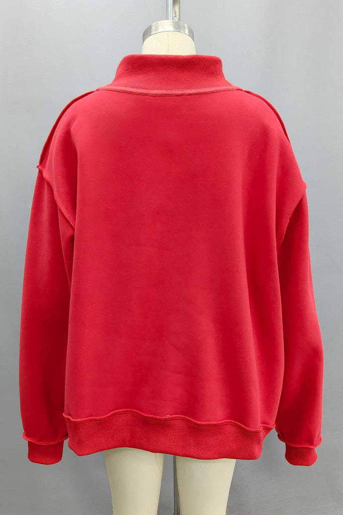 'Wrap yourself in pure comfort with our 'OKLAHOMA' Embroidered Mock Neck Sweatshirt—the ultimate cozy essential for laid-back vibes. Featuring a soft, luxurious fleece that feels like a warm hug, this oversized beauty boasts a trendy drop shoulder silhouette and long sleeves perfect for chilly days. The mock neck adds a touch of sophistication, while rib-banded cuffs and hemline keep everything snug and polished. Whether you're lounging at home or running errands around town, this sweatshirt delivers effortless style and all-day comfort. A playful nod to the heartland, it's the piece your wardrobe has been waiting for!