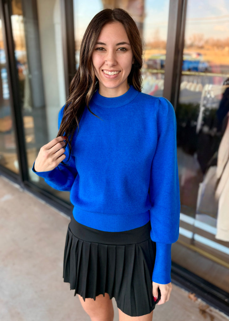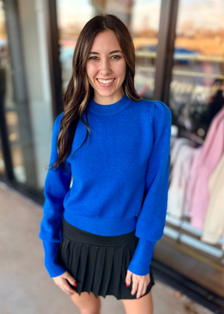 Wrap yourself in cozy vibes with this royal blue crewneck sweater that's basically a hug you can wear. The super soft fabric feels like a cloud against your skin, while the playful balloon sleeves add just the right amount of personality to your everyday look. Perfect for those days when comfort is absolutely non-negotiable. Layer it, style it solo, or make it your go-to piece for effortless cool.