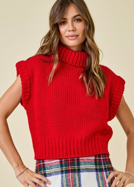 On The Rise Red Sleeveless Turtleneck Knit Sweater
