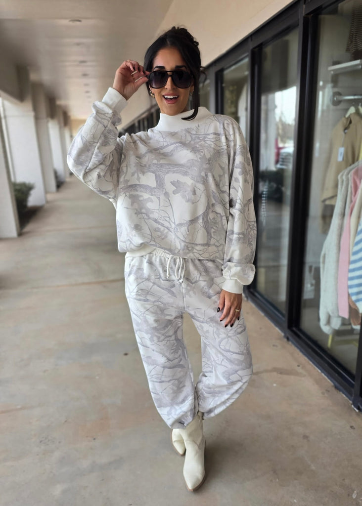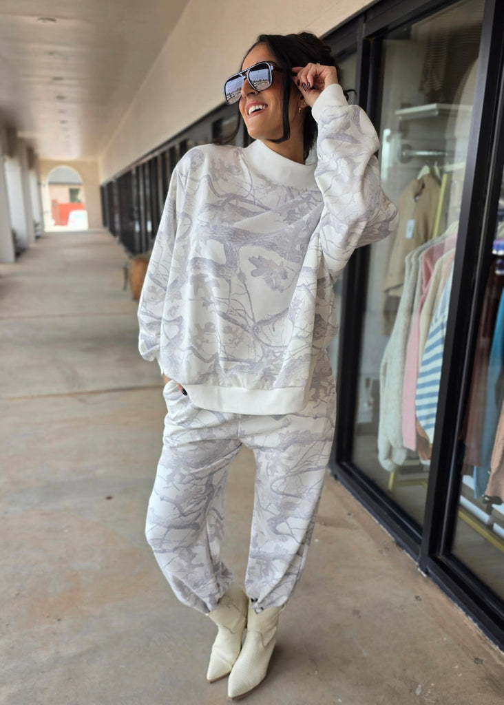 Rock the ultimate laid-back look with our Now You See Me Camouflage Joggers. Featuring a comfortable elastic waist paired with an adjustable drawstring, these joggers keep you secure and stylish all day long. Practical side pockets mean your essentials stay close by. Mix and match with our Now You See Me Sweatshirt to create the perfect cozy-cool ensemble that's ready for anything—from coffee runs to casual hangouts.