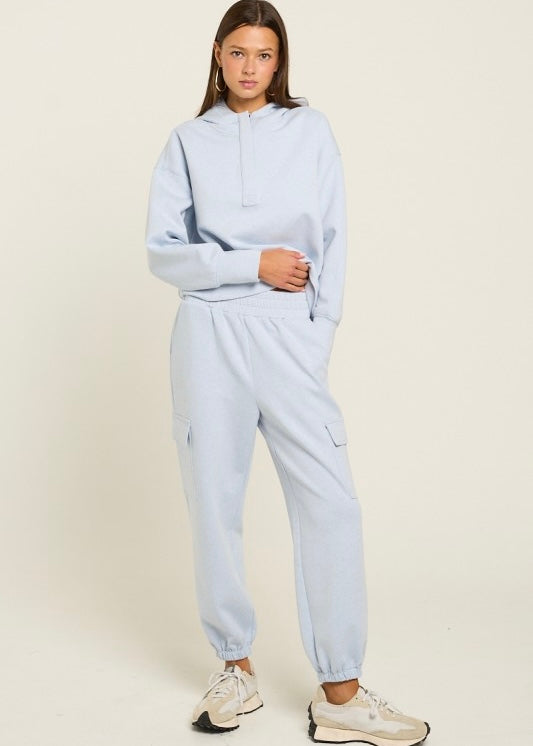 Meet your new favorite lazy-day essential—these cargo joggers that refuse to take themselves seriously. Built from buttery-soft scuba fabric, they're designed for maximum comfort without the fuss. Dual side pockets keep your phone and keys within reach, while strategically placed cargo pockets halfway down the legs add functional flair. Whether you're running errands or embracing full couch-mode, these elastic waist joggers deliver that perfect blend of casual comfort and playful style that makes getting dressed actually fun.