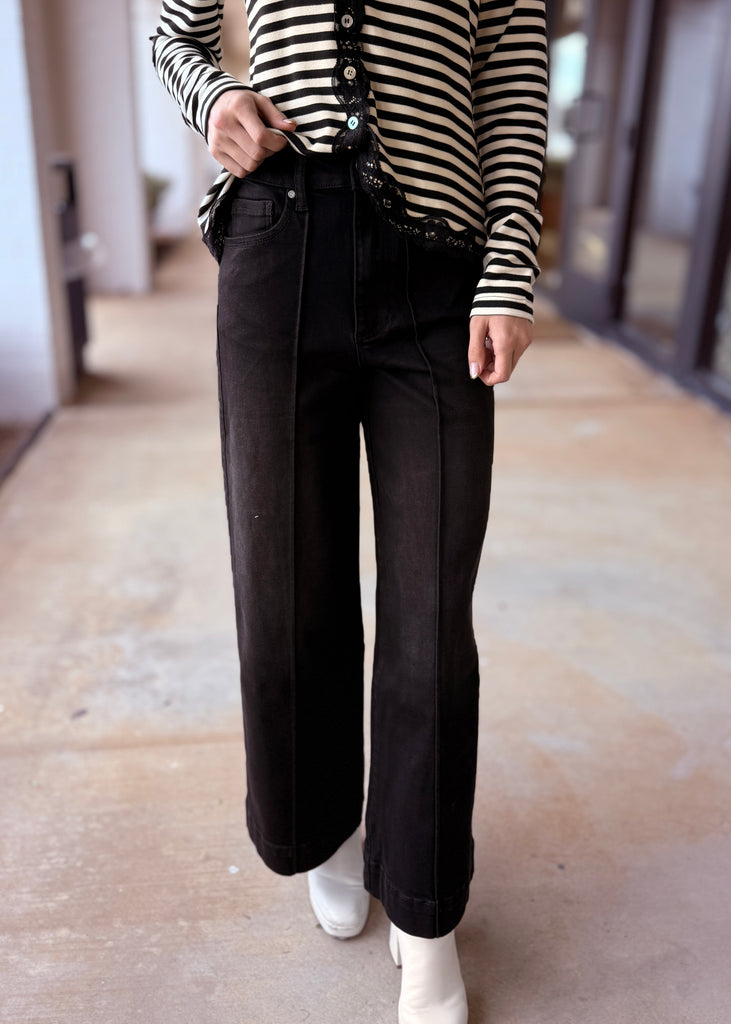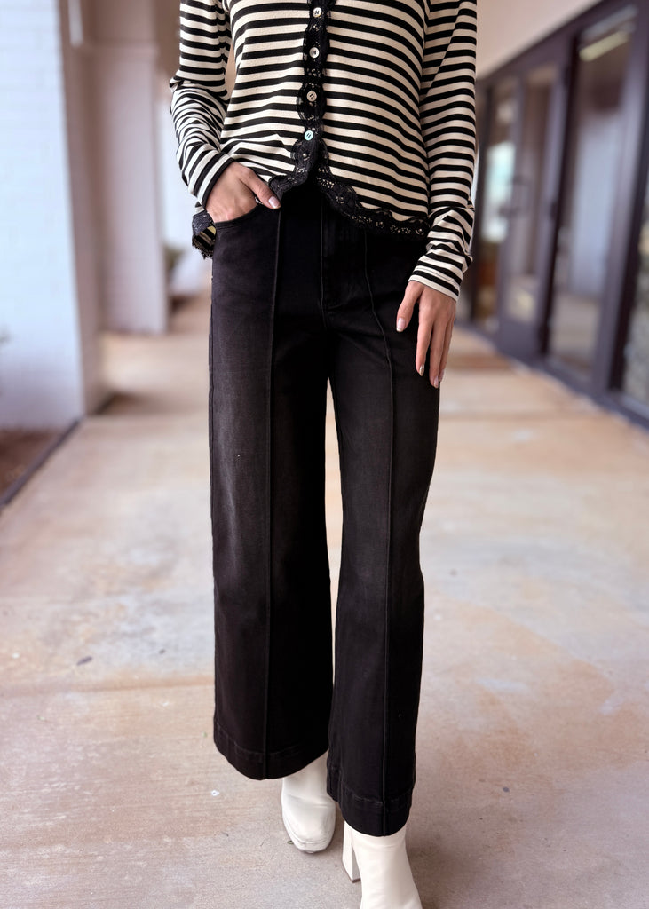 Destiny Wide Leg Pin-Tuck Black Denim