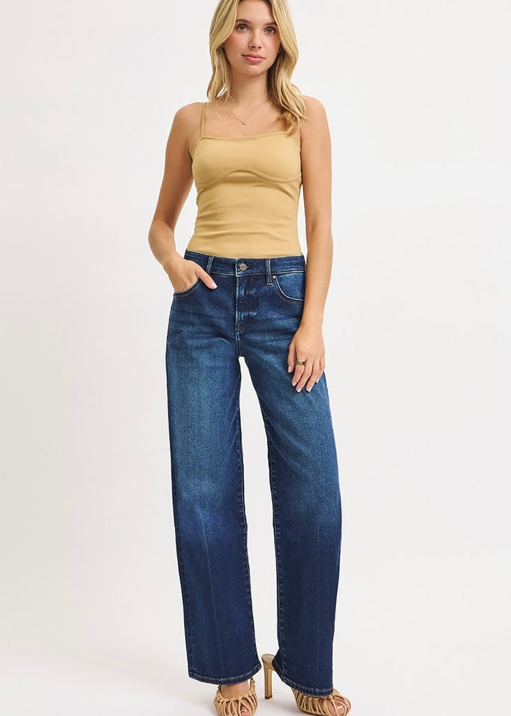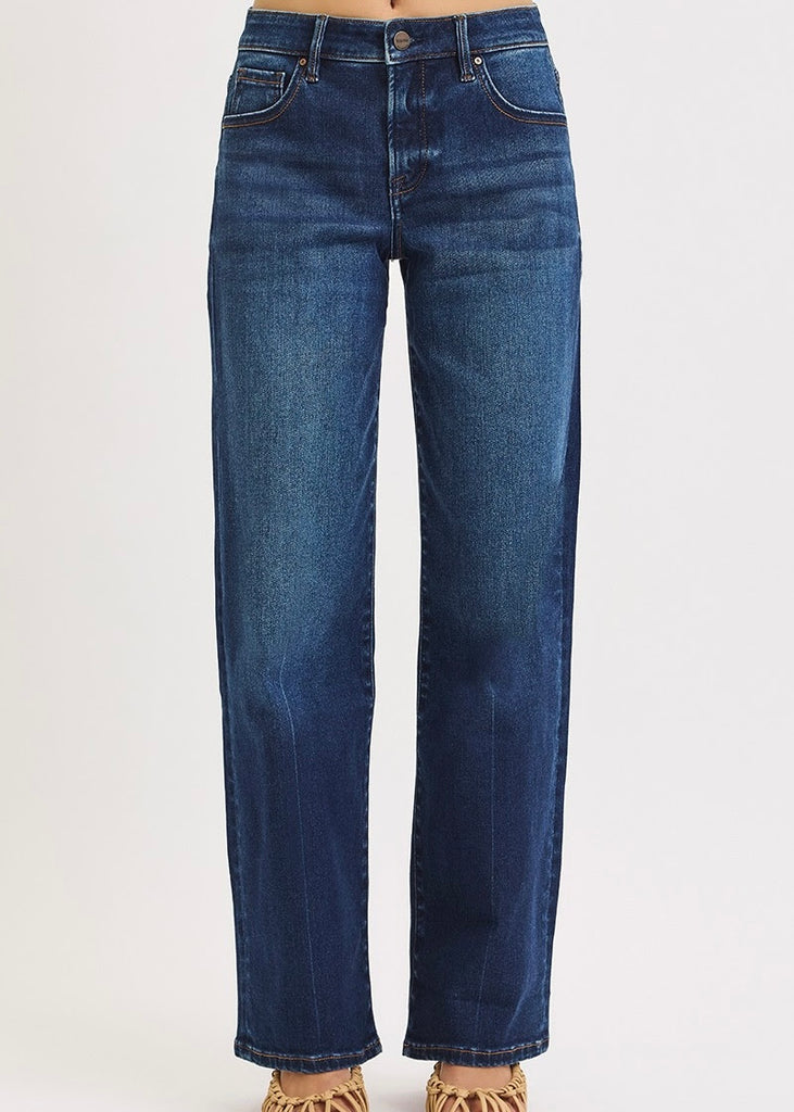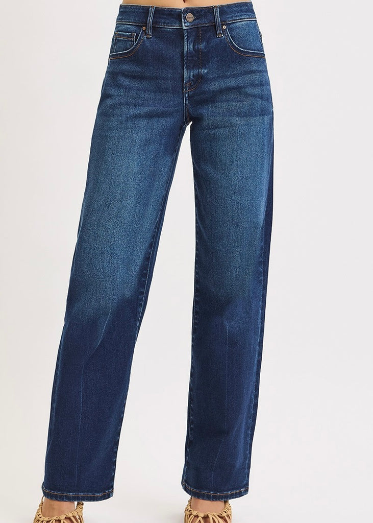 Effortlessly cool and undeniably comfy, these mid-rise dark wash jeans are your new go-to. The relaxed straight-to-wide leg silhouette gives you that coveted baggy vibe without sacrificing style. Perfect for pairing with everything from crop tops to oversized tees, these jeans deliver that laid-back attitude with serious staying power. Dress them up or down—they're basically the denim equivalent of saying "I woke up like this."