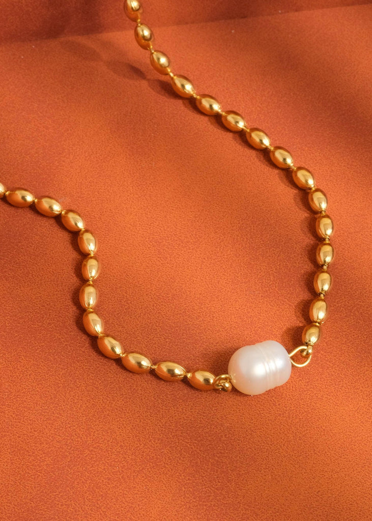 Elevate your everyday sparkle with the Vigne Pearl Ball Chain Necklace—where timeless elegance meets modern flair. Crafted from 18K gold-plated stainless steel, this beauty resists tarnish and keeps its lustrous glow through countless wears. Freshwater pearls add a touch of sophistication, while the hypoallergenic, nickel-safe design means you can layer it worry-free. At 16 inches with a 2-inch extension, it's the perfect length to mix and match with your favorite pieces. Water-resistant and lead-free, this necklace is ready for whatever your day brings—from brunch to bedtime glam.