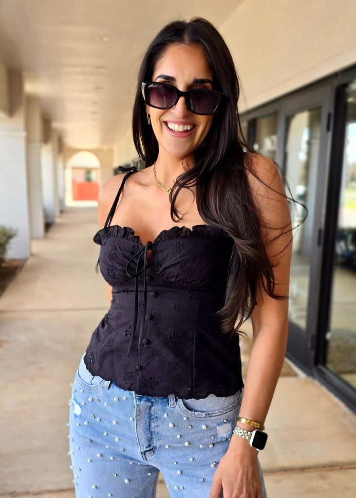 For The Fun Of It Black Eyelet Bustier Peplum Top