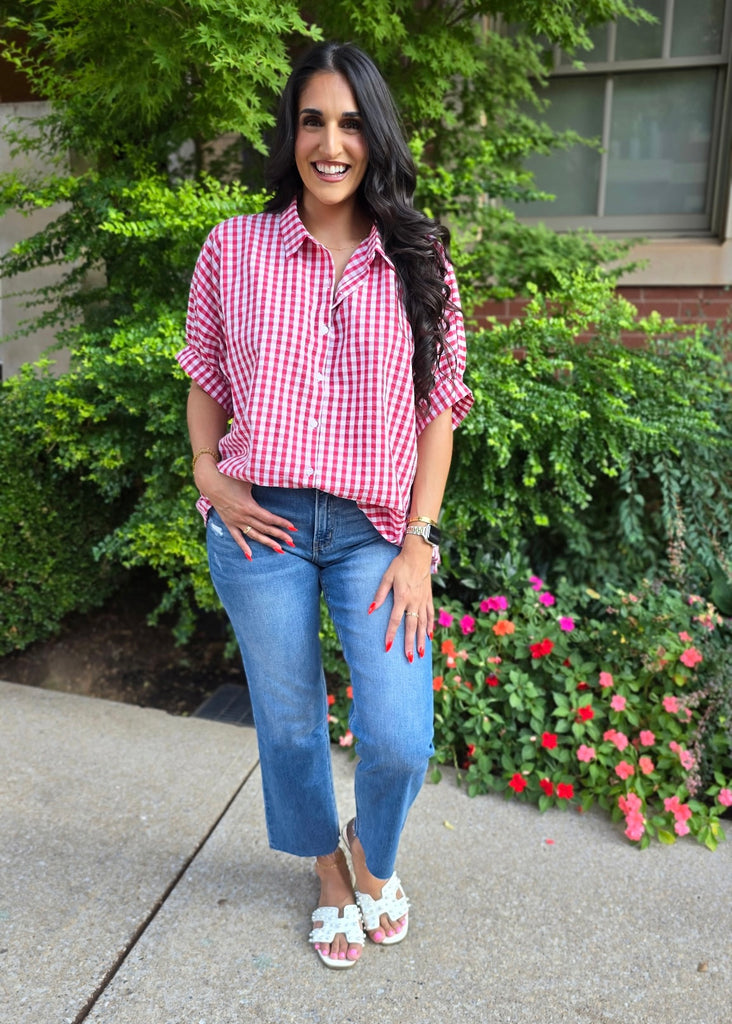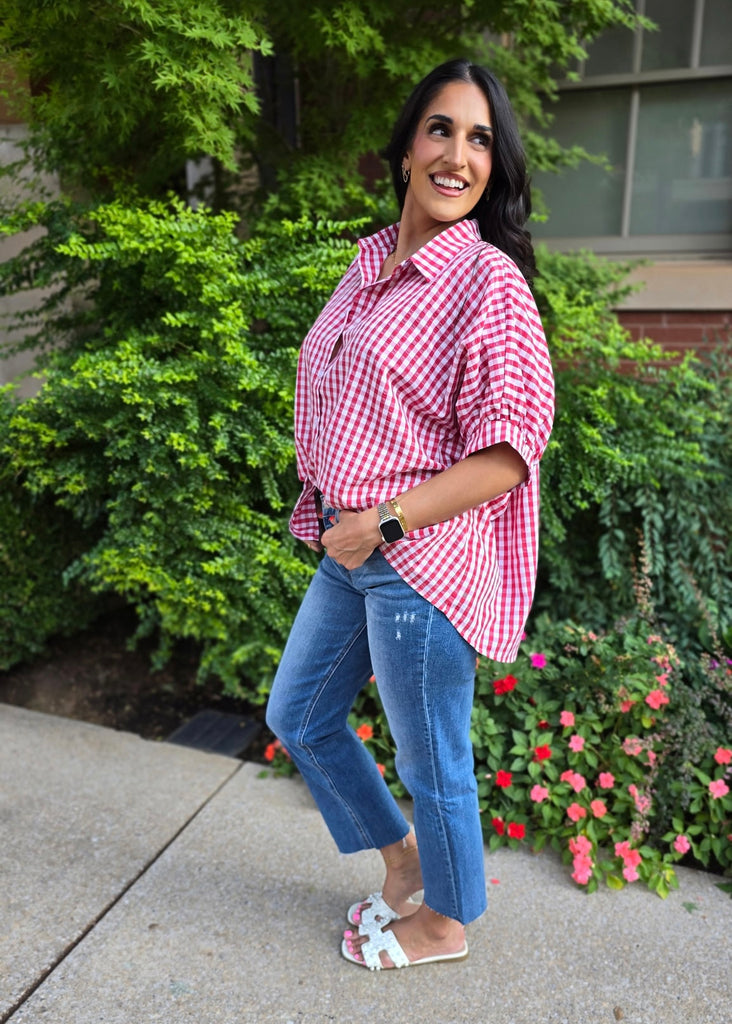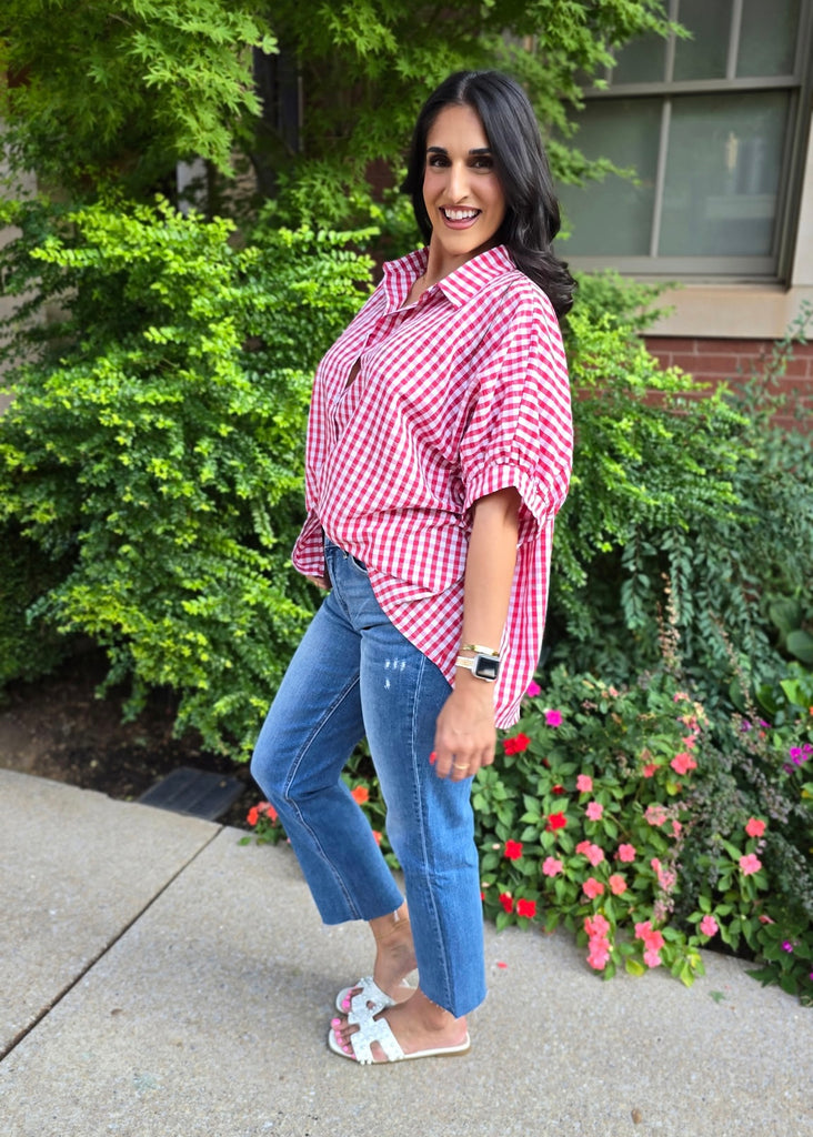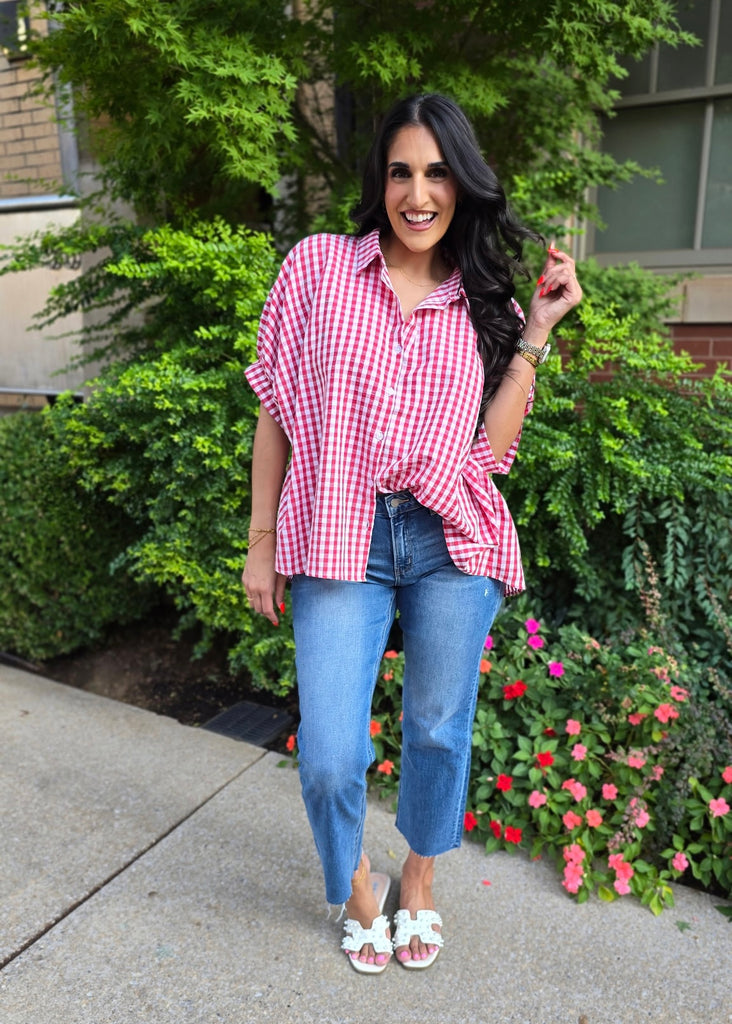 Lack Of Time Red & White Gingham Oversized Shirt