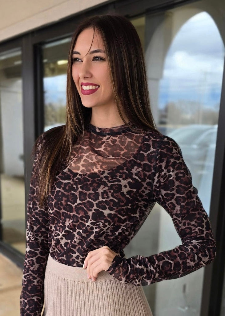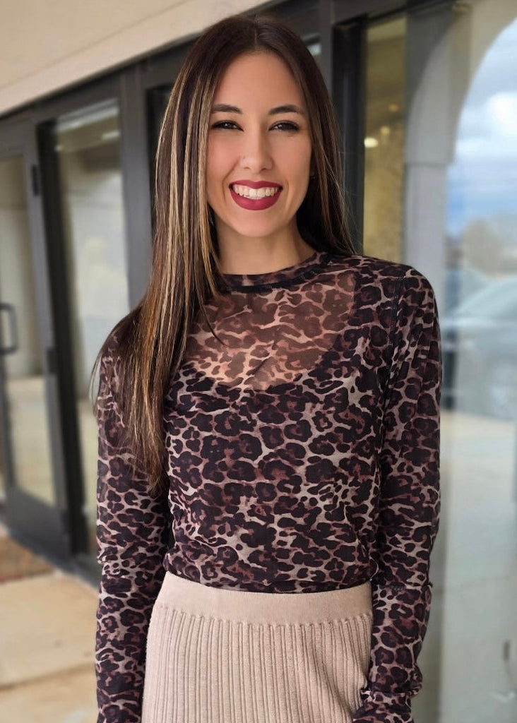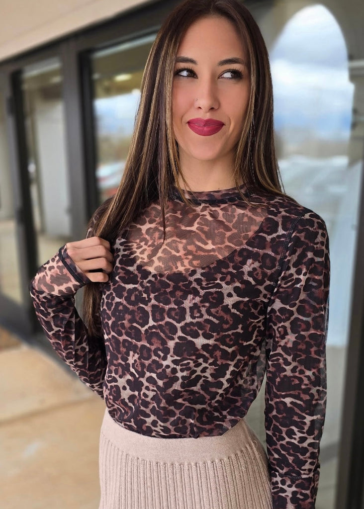 Loving Leopard Long Sleeve Mesh Top