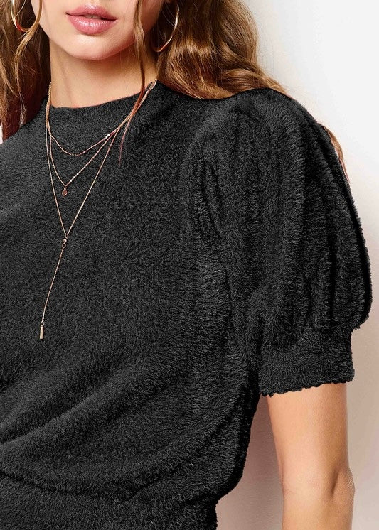 Elevate your everyday with this show-stopping black puff sleeve sweater top that's equal parts cozy and chic. The ultra-soft fabric drapes beautifully while the romantic mock neck and voluminous short sleeves add instant drama and dimension. Whether you're dressing it up for a night out or keeping it casual with your favorite jeans, this versatile piece does the heavy lifting. It's the kind of top that makes you feel effortlessly put-together—because sometimes looking good is the best accessory.