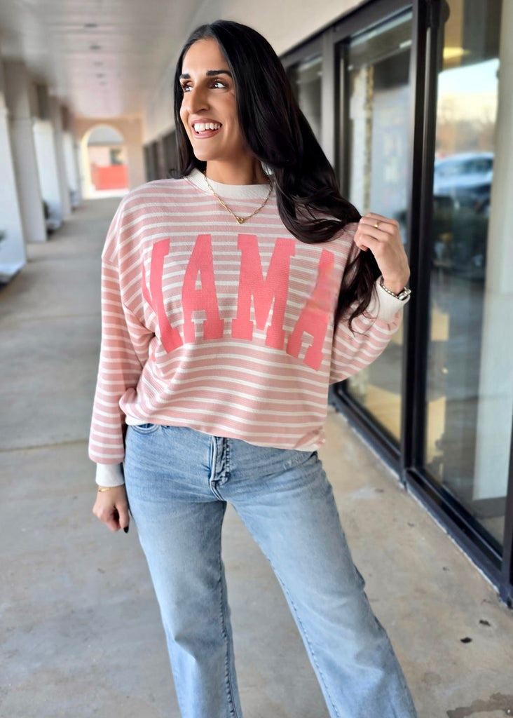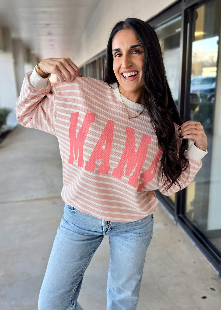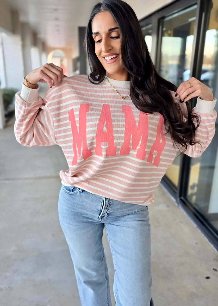 "Mama" Pink & White Stripe Knit Long Sleeve Top – Pink Attitude Boutique