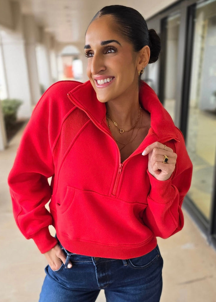 The Scuba Half Zip Sweatshirt - Tomato – Pink Attitude Boutique