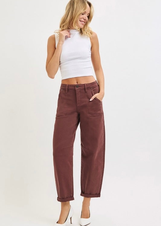 Adeline High Rise Brown Ankle Cuffed Barrel Pants