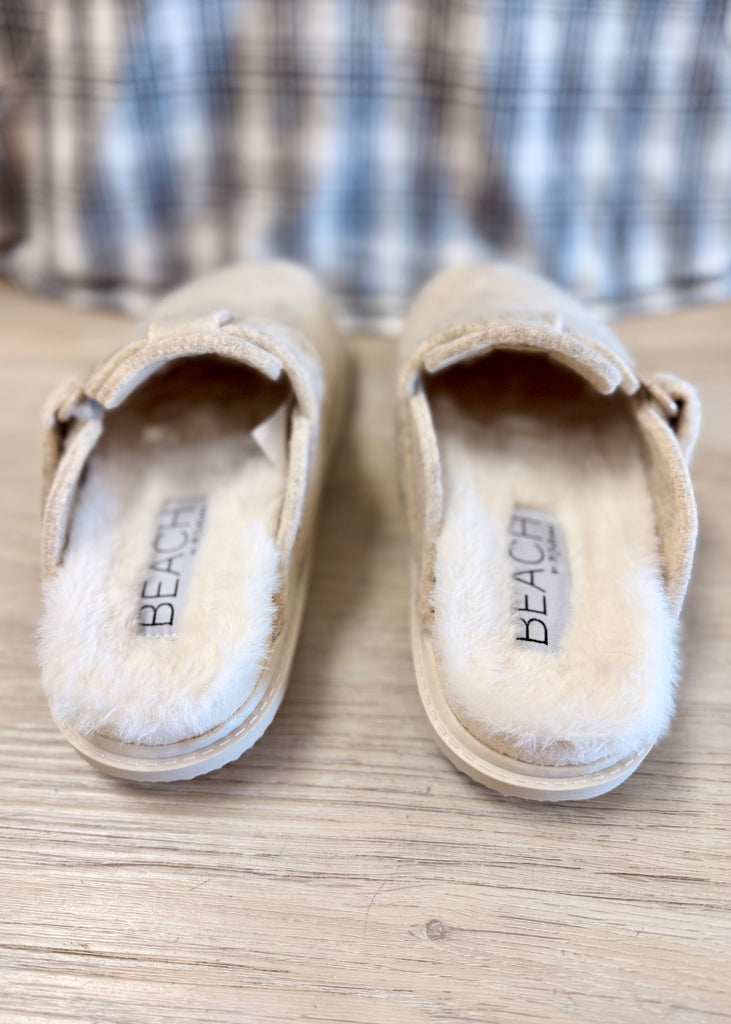 Step into cozy comfort with the Beach by Matisse Portland Oatmeal Mule. Featuring a soft oatmeal felt exterior and a fuzzy, furry lining, these flat slip-on shoes keep your feet warm and stylish. The faux buckle adds a fun twist while the closed-toe design makes them perfect for casual days on the go. Easy to wear and effortlessly chic, these mules are your new go-to for laid-back vibes.