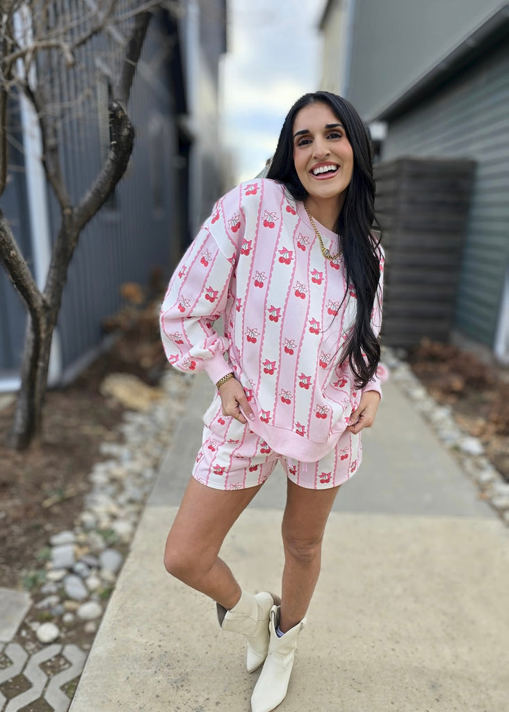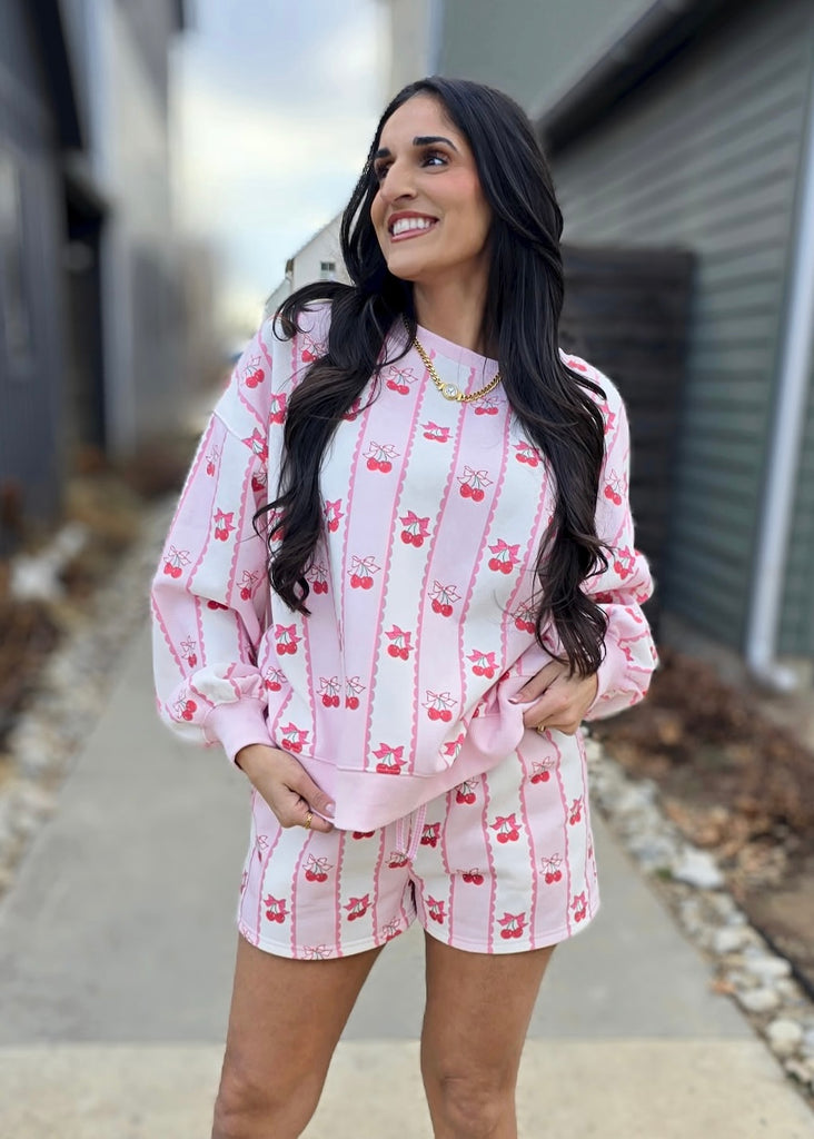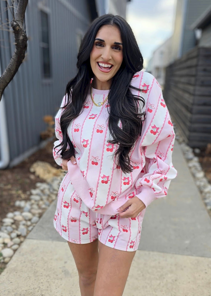 Cherry Love Pink 2 Pc. Sweatshirt/Short Set