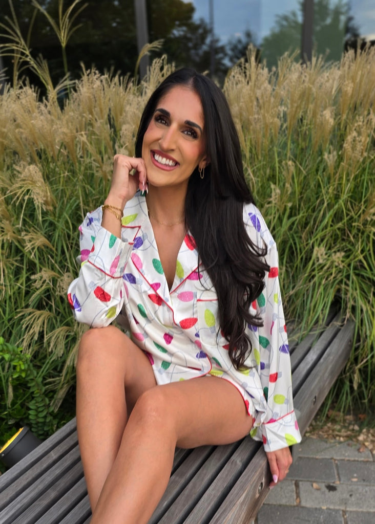 Turn On The Christmas Lights Satin 2pc Pj Set – Pink Attitude Boutique