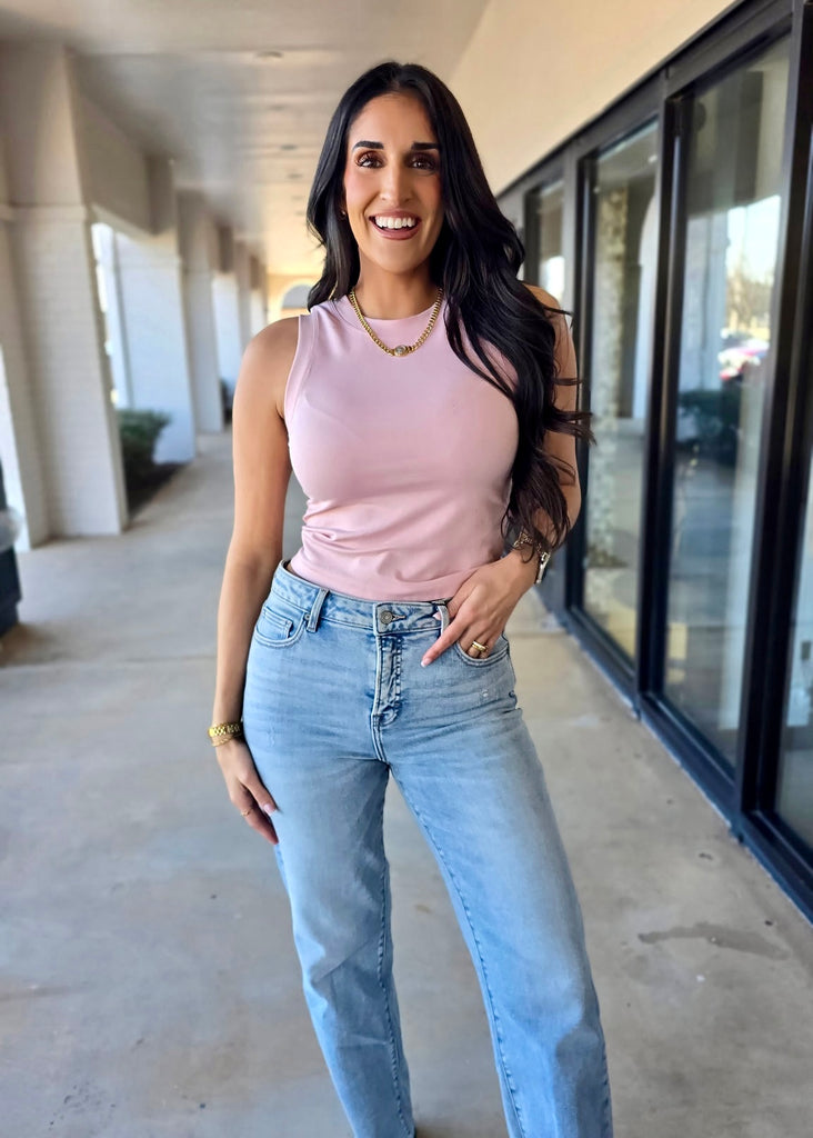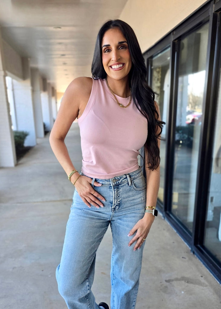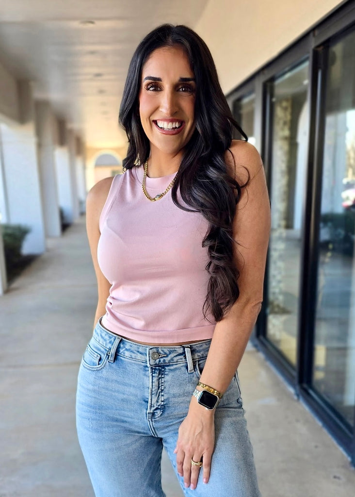 Don't let this soft pink seamless tank fly under your radar! This versatile essential hugs your curves in all the right ways with its stretchy, comfy fabric and hits perfectly at your waistband. Wear it solo with your favorite shorts or jeans for effortless summer vibes, layer it under a blazer for polished sophistication, or pair it with a jacket for those cooler days. The seamless construction means zero distractions—just pure comfort and style. Your new go-to piece is here!