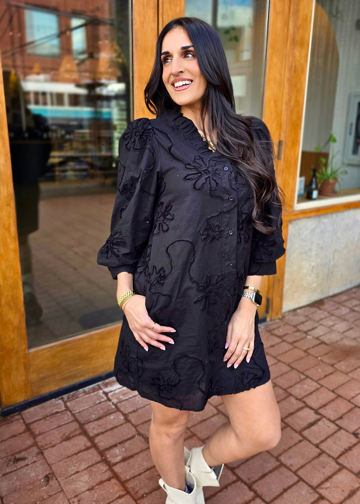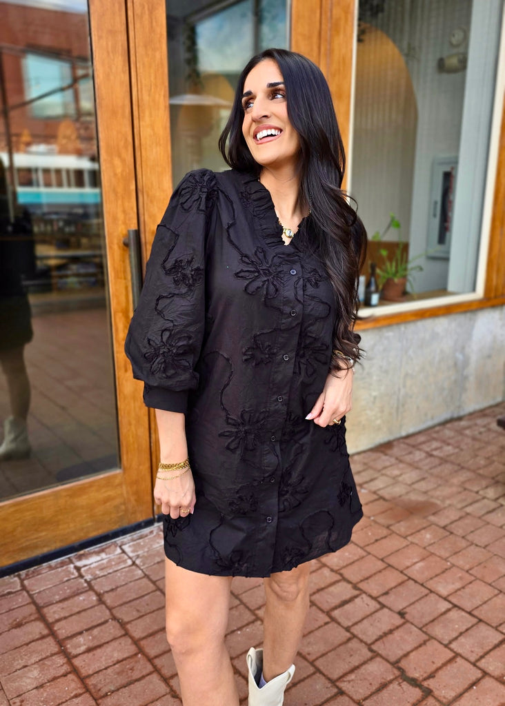 Effortlessly chic and undeniably cute, this black button-up mini dress is your new go-to for looking put-together without trying too hard. The classic black design pairs with everything in your closet, while functional pockets add a practical touch that actually matters. Whether you're dressing it up with heels or keeping it casual with sneakers, this versatile piece delivers style and comfort in one adorable package. Perfect for those days when you want to feel pretty while staying relaxed.