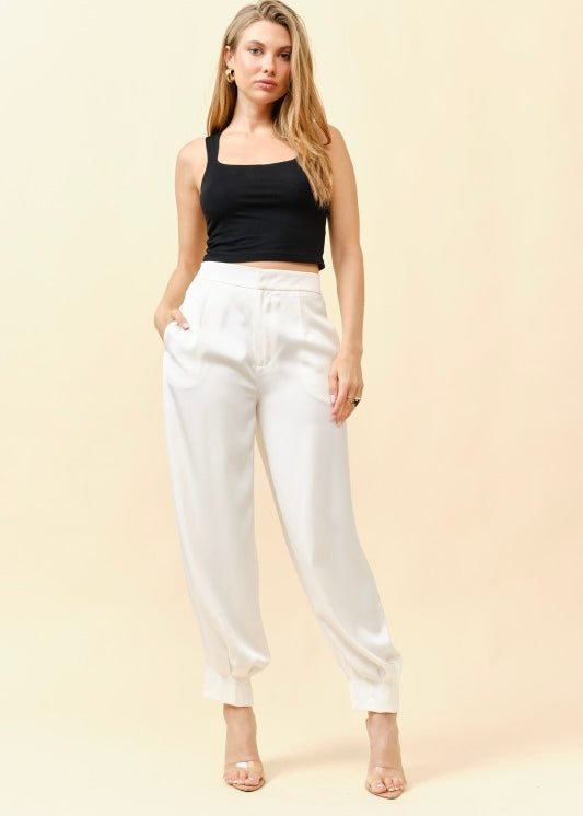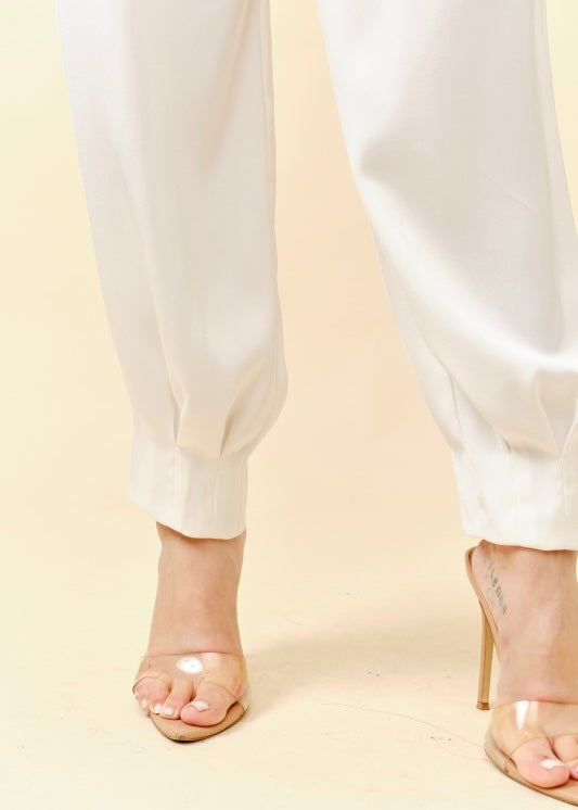 Fancy Pants Ivory Satin Tapered Trouser Pants – Pink Attitude Boutique