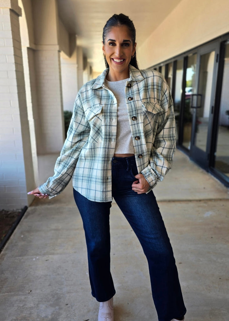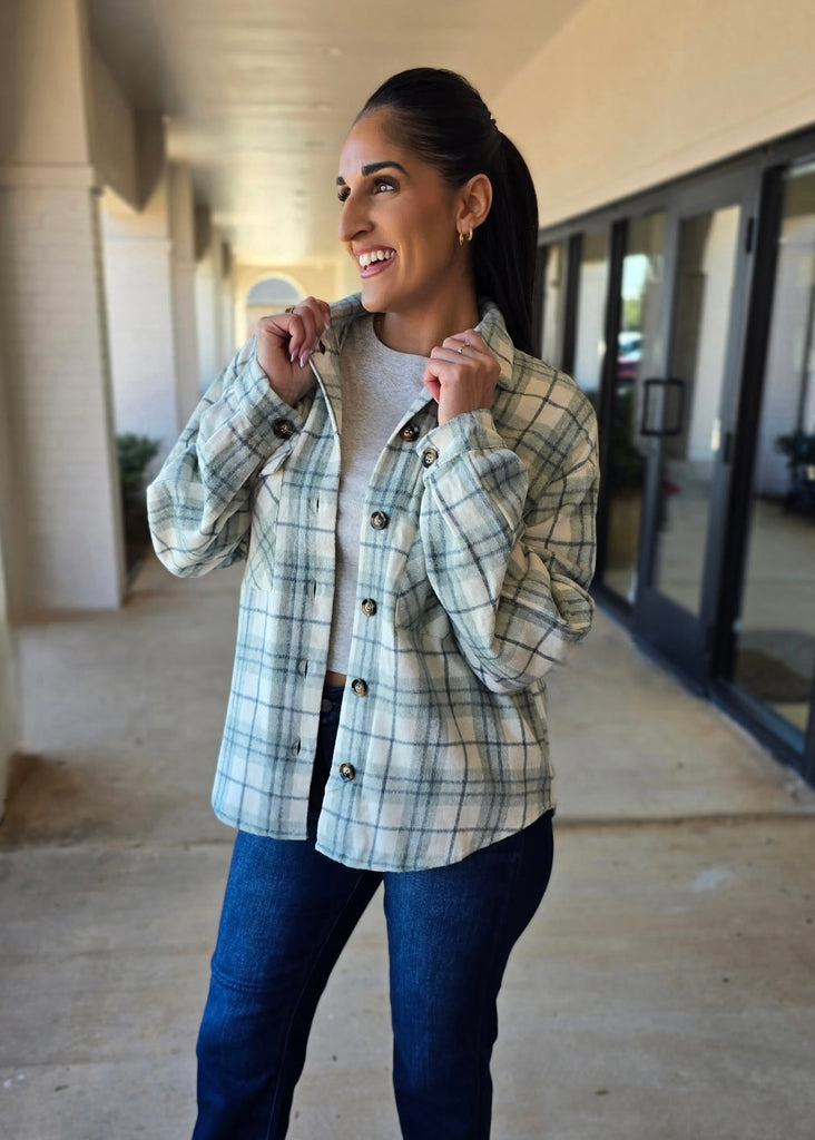 Layer up with our Fun For Fall Sage Flannel Shacket—the perfect piece that's part shirt, part jacket, all cozy! Crafted from soft flannel in a gorgeous sage hue, this collared beauty features a relaxed, loose fit that's ideal for throwing over your favorite tee. Practical front pockets keep your essentials close, while the button-up design makes it effortlessly versatile. Whether you're heading to the pumpkin patch or just embracing those crisp autumn vibes, this shacket is your new go-to for effortless style and comfort.