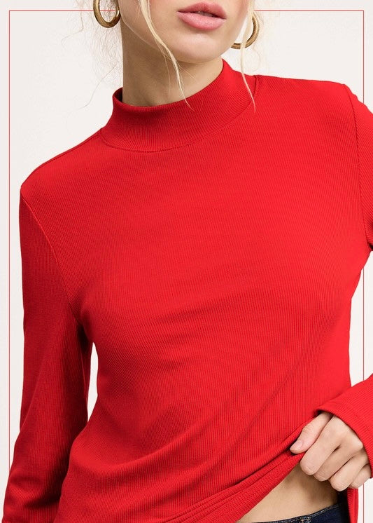 Elevate your layering game with this fitted ribbed long sleeve mock neck top—the ultimate wardrobe essential that works with everything. Its sleek silhouette hugs in all the right places, making it perfect for styling under slip dresses, oversized blazers, or on its own. The timeless ribbed texture adds subtle dimension while the mock neck keeps things chic and polished. Available in three gorgeous colors, collect them all to mix and match your way through the season. Simple, versatile, and endlessly stylish.
