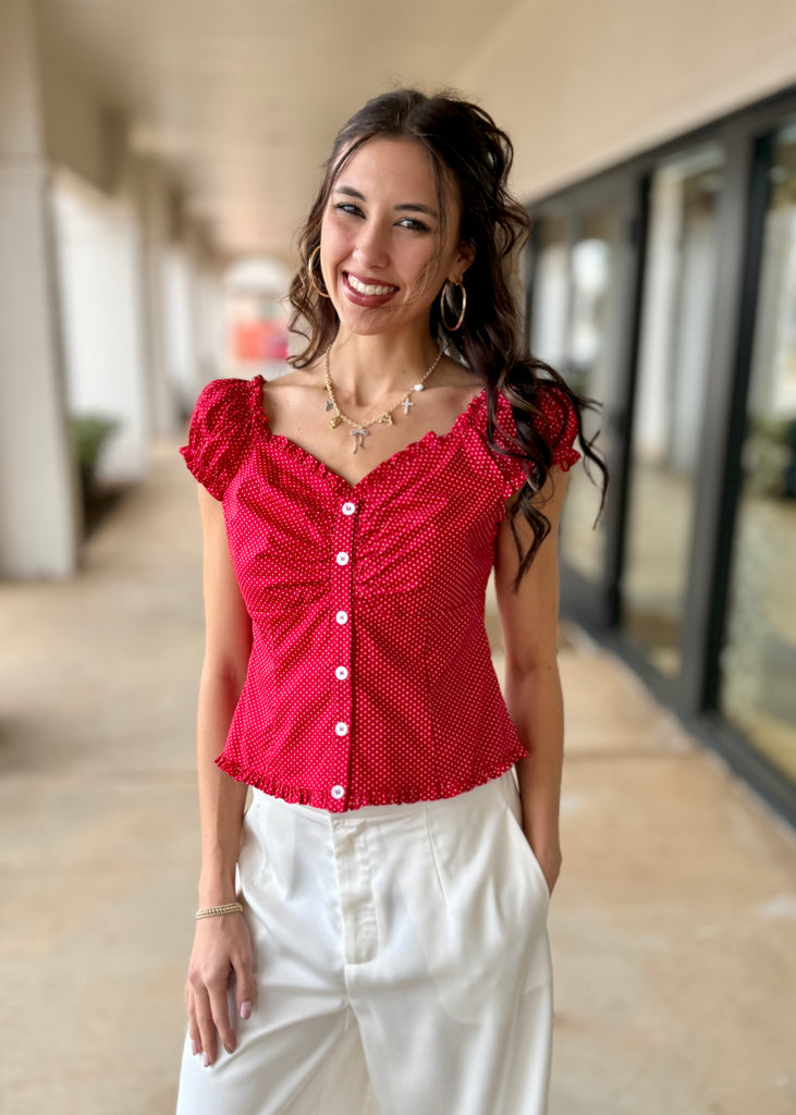 Polka Dot Fun Red Button Up Top