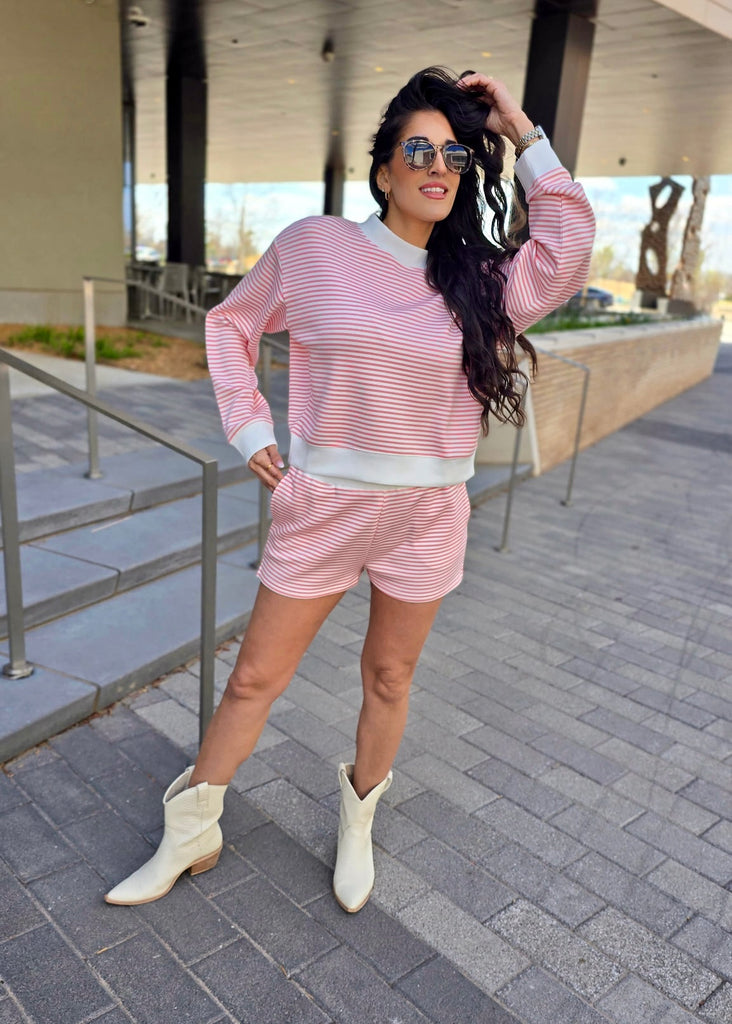 Traveling Abroad Pink & White Striped 2 Pc Short Set
