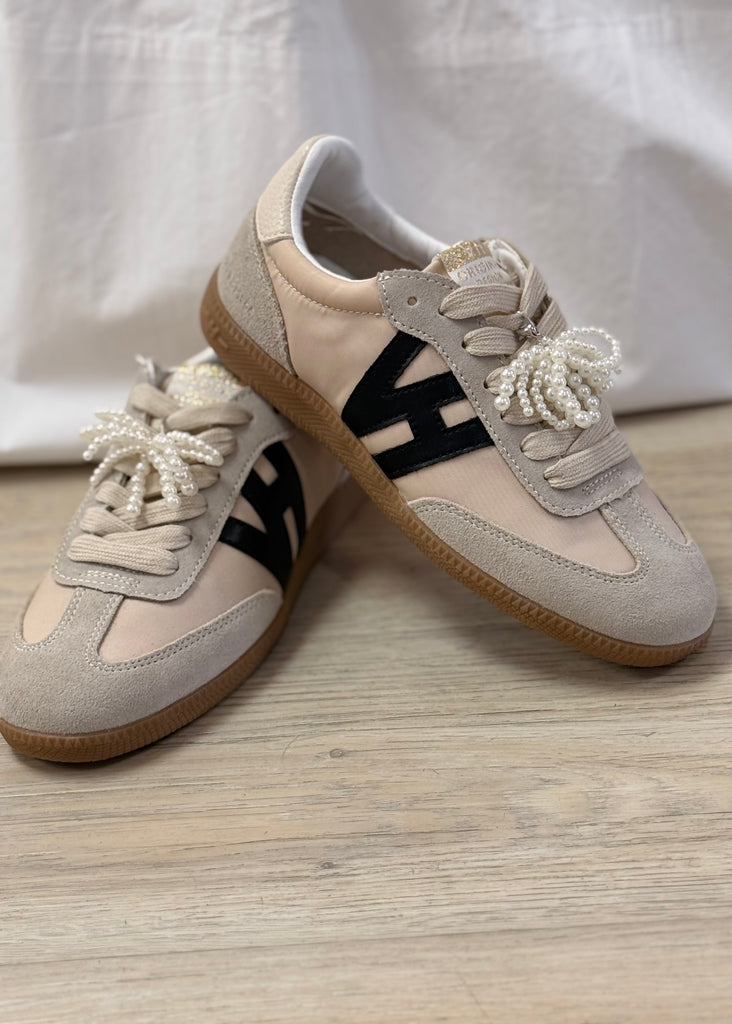 Step into effortless summer style with the Vintage Havana Nadia Sneaker. This best-selling design features a neutral colorway that pairs with everything, complete with a lace-up closure for a secure fit. The padded insole keeps your feet comfortable all day long, while the .25" gum sole and .50" platform provide lightweight cushioning and a subtle lift. Crafted from nylon and faux leather, the Nadia showcases the iconic black VH branding on the side, accented with an optional pearl detail bow. Perfect for beach days, casual outings, and all your warm-weather adventures.